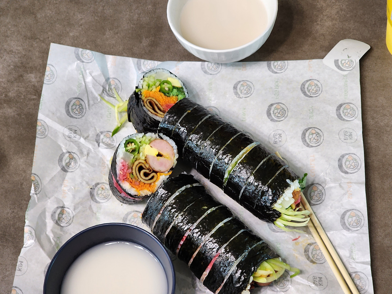 특히 밥의 양을 과도하게 늘리지 않고 속재료 비중을 높인 구성이라, 끝까지 물리지 않고 먹을 수 있는 점이 강점입니다. 김밥을 자를 때부터 단면이 또렷하게 살아 있으며, 한 조각씩 집어 먹을 때 재료가 흩어지지 않는 완성도도 인상적입니다.